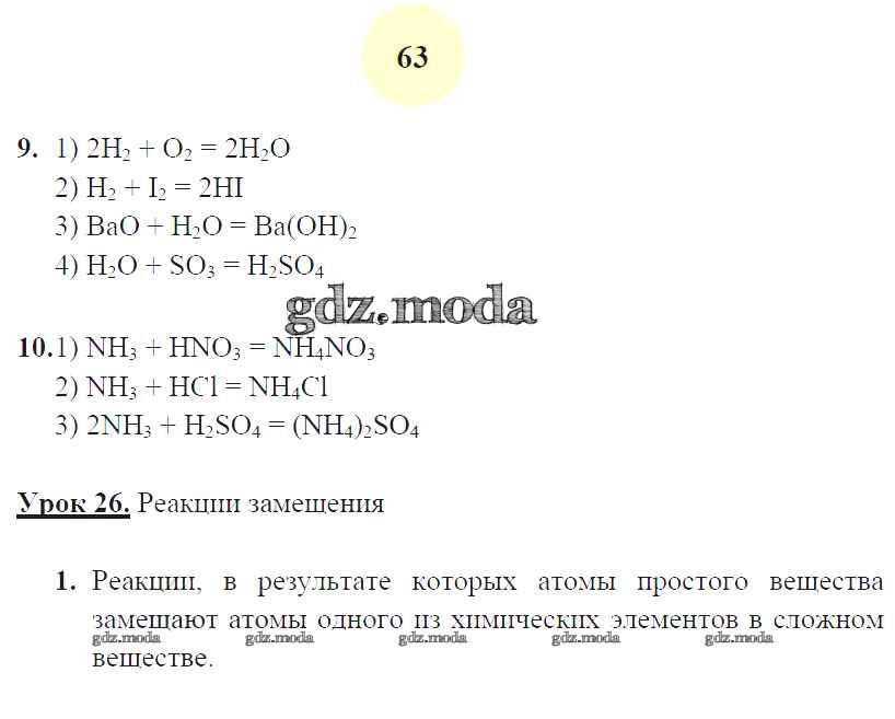 ГДЗ решение к заданию № 63 Химия 8 класс рабочая тетрадь Микитюк А.Д. (к уч. Габриеляна О.С.) Экзамен 2015 ФГОС бесплатно на гдз.мода!