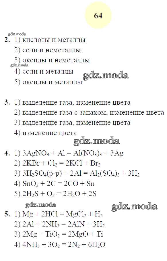 ГДЗ решение к заданию № 64 Химия 8 класс рабочая тетрадь Микитюк А.Д. (к уч. Габриеляна О.С.) Экзамен 2015 ФГОС бесплатно на гдз.мода!