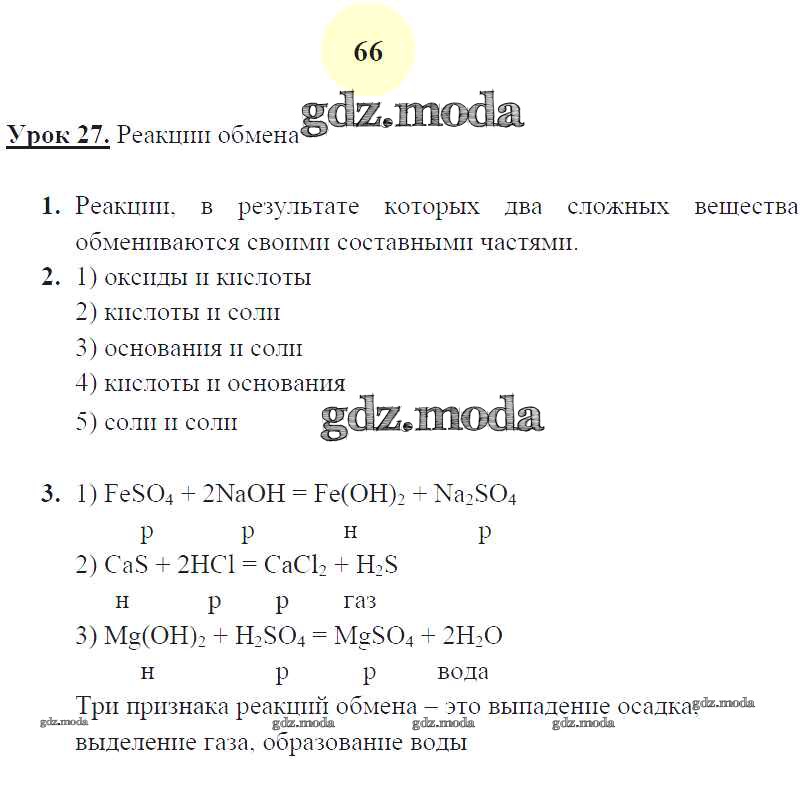 ГДЗ решение к заданию № 66 Химия 8 класс рабочая тетрадь Микитюк А.Д. (к уч. Габриеляна О.С.) Экзамен 2015 ФГОС бесплатно на гдз.мода!