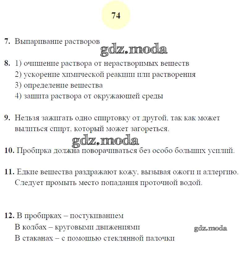 ГДЗ решение к заданию № 74 Химия 8 класс рабочая тетрадь Микитюк А.Д. (к уч. Габриеляна О.С.) Экзамен 2015 ФГОС бесплатно на гдз.мода!