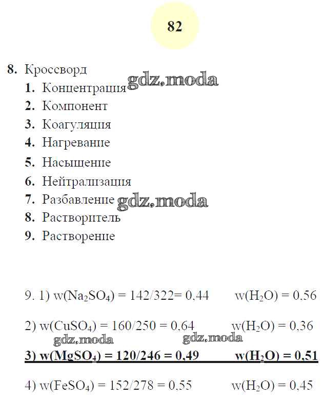 ГДЗ решение к заданию № 82 Химия 8 класс рабочая тетрадь Микитюк А.Д. (к уч. Габриеляна О.С.) Экзамен 2015 ФГОС бесплатно на гдз.мода!