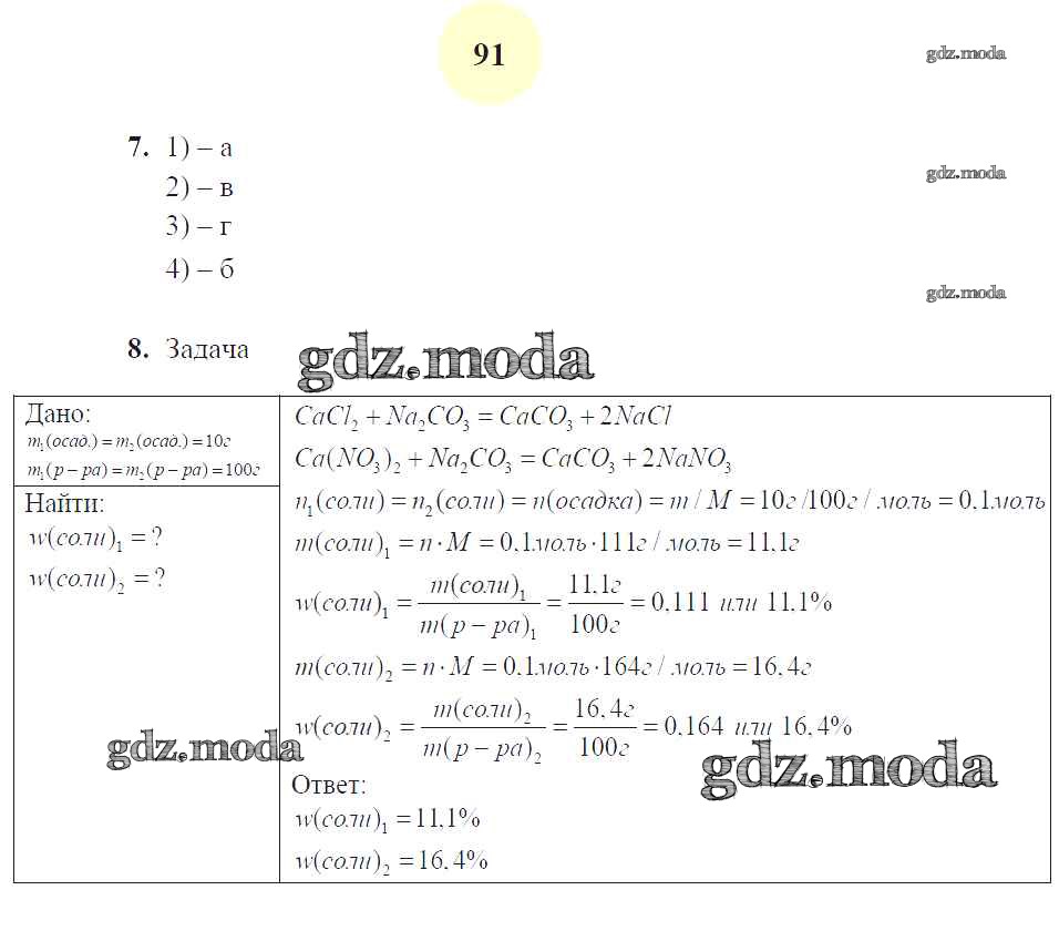 ГДЗ решение к заданию № 91 Химия 8 класс рабочая тетрадь Микитюк А.Д. (к уч. Габриеляна О.С.) Экзамен 2015 ФГОС бесплатно на гдз.мода!