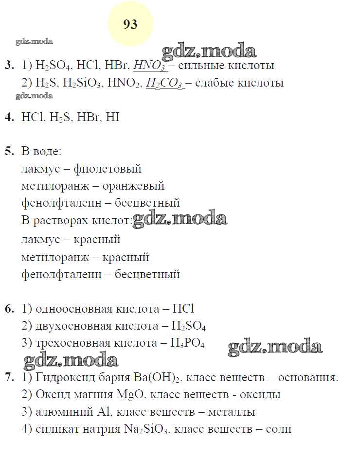 ГДЗ решение к заданию № 93 Химия 8 класс рабочая тетрадь Микитюк А.Д. (к уч. Габриеляна О.С.) Экзамен 2015 ФГОС бесплатно на гдз.мода!