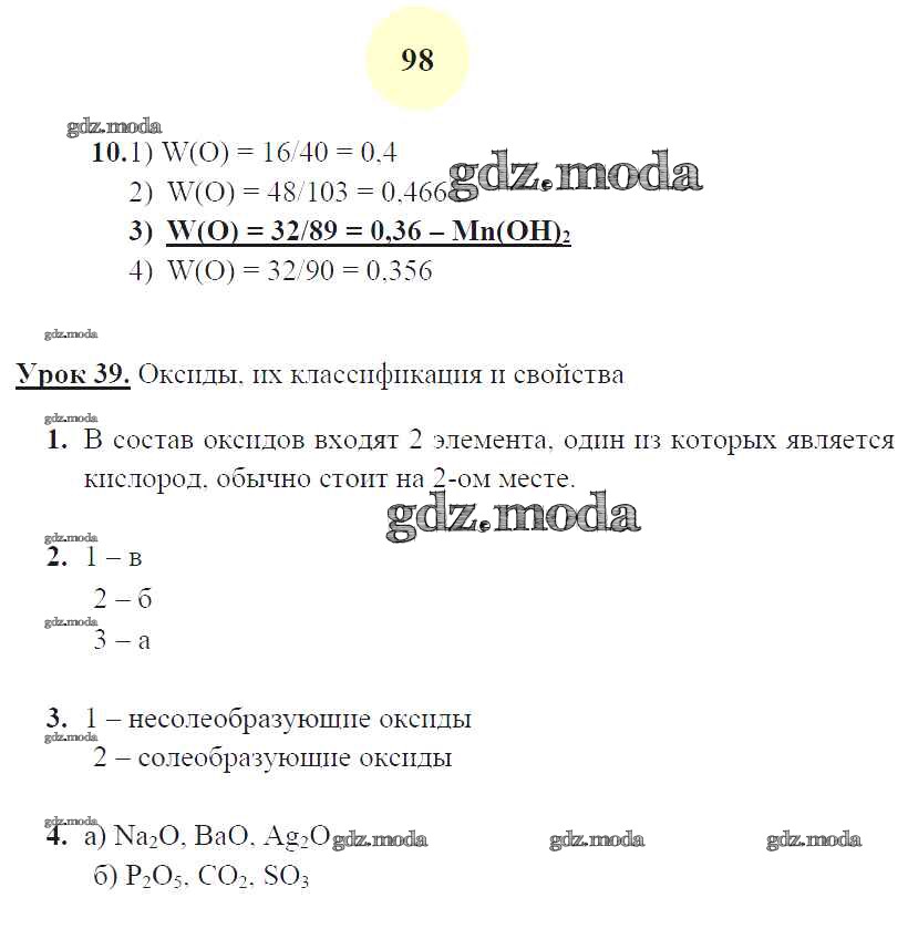 ГДЗ решение к заданию № 98 Химия 8 класс рабочая тетрадь Микитюк А.Д. (к уч. Габриеляна О.С.) Экзамен 2015 ФГОС бесплатно на гдз.мода!