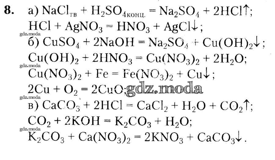 ГДЗ решение к заданию № 8 Химия 8 класс Шиманович И.Е. Народная асвета 2018 бесплатно на гдз.мода!
