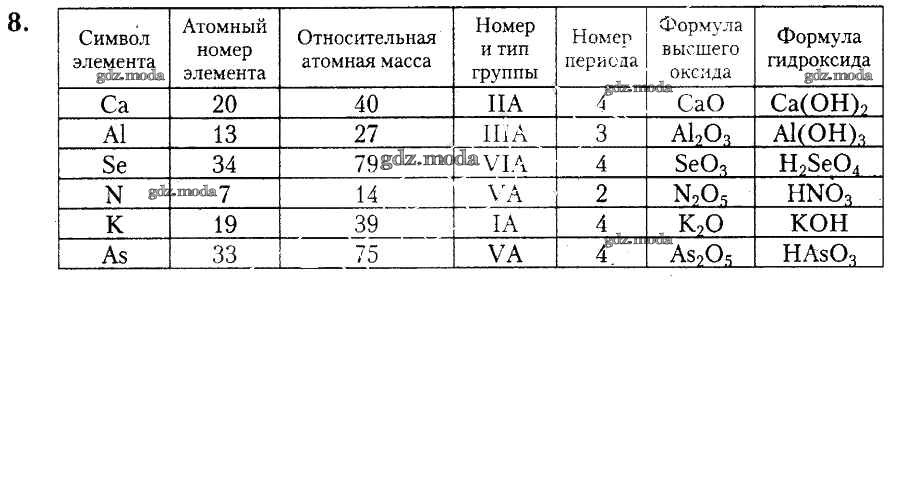 ГДЗ решение к заданию № 8 Химия 8 класс Шиманович И.Е. Народная асвета 2018 бесплатно на гдз.мода!
