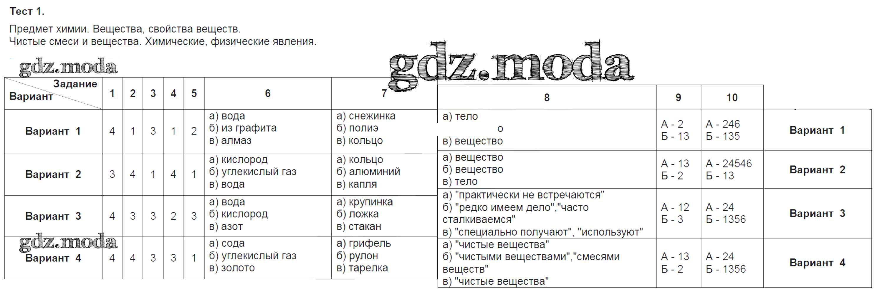 ОТВЕТ на задание № 1 Тесты по Химии 8 класс Боровских УМК