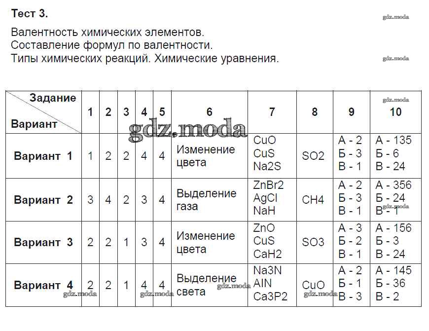 ГДЗ решение к заданию № Тест 3 Химия 8 класс тесты Боровских Т.А. (к уч. Рудзитиса Г.Е.) Экзамен 2013 ФГОС бесплатно на гдз.мода!