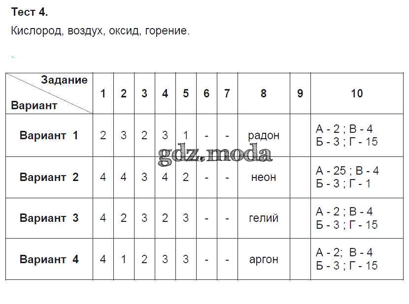 ГДЗ решение к заданию № Тест 4 Химия 8 класс тесты Боровских Т.А. (к уч. Рудзитиса Г.Е.) Экзамен 2013 ФГОС бесплатно на гдз.мода!