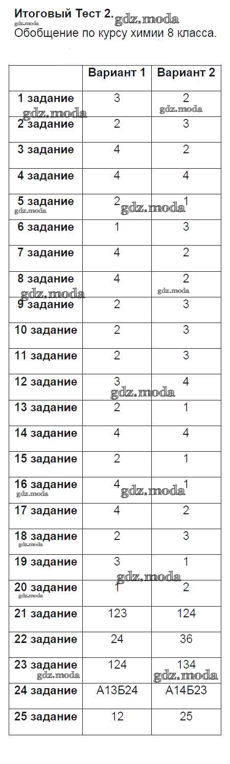 ОТВЕТ на задание № 2 Тесты по Химии 8 класс Боровских УМК