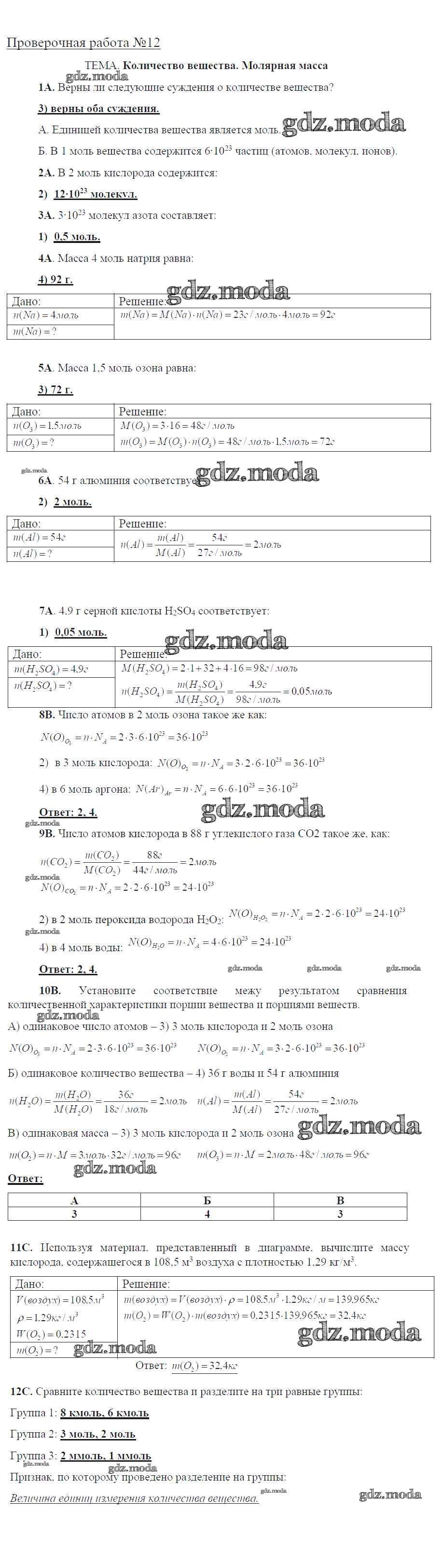 ГДЗ решение к заданию № 12 Химия 8 класс тетрадь для оценки качества знаний Габриелян О.С. Дрофа 2013 ФГОС бесплатно на гдз.мода!