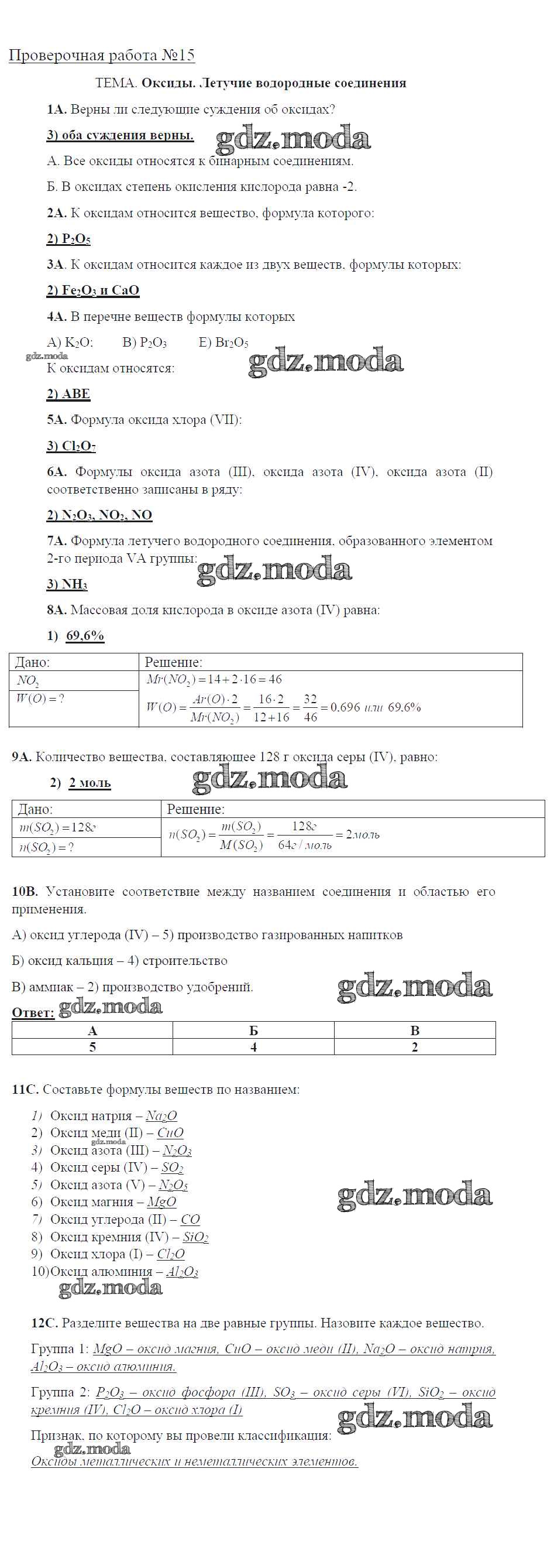 ГДЗ решение к заданию № 15 Химия 8 класс тетрадь для оценки качества знаний Габриелян О.С. Дрофа 2013 ФГОС бесплатно на гдз.мода!