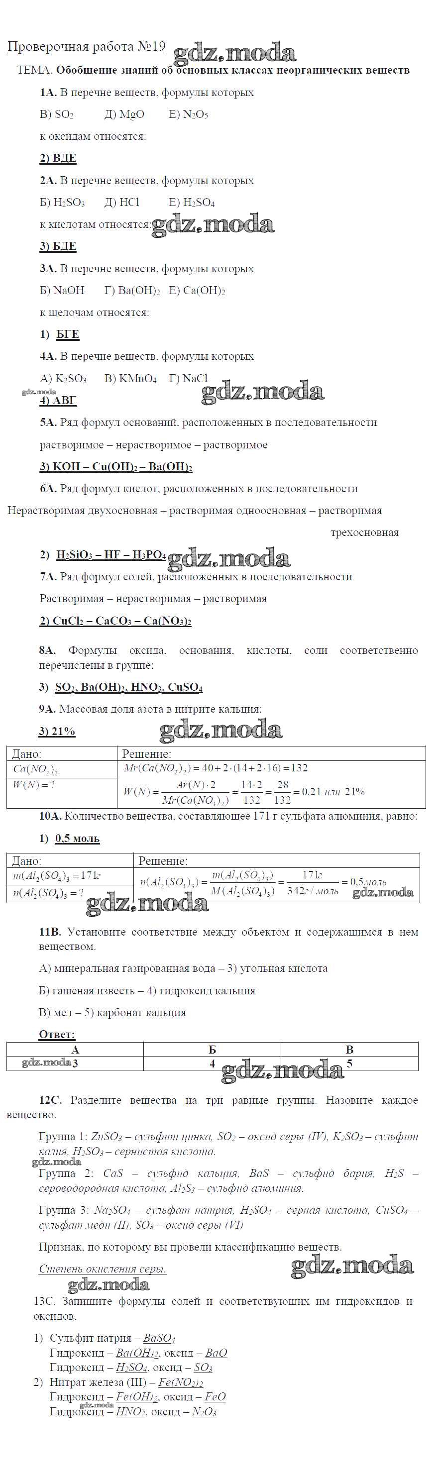 ГДЗ решение к заданию № 19 Химия 8 класс тетрадь для оценки качества знаний Габриелян О.С. Дрофа 2013 ФГОС бесплатно на гдз.мода!