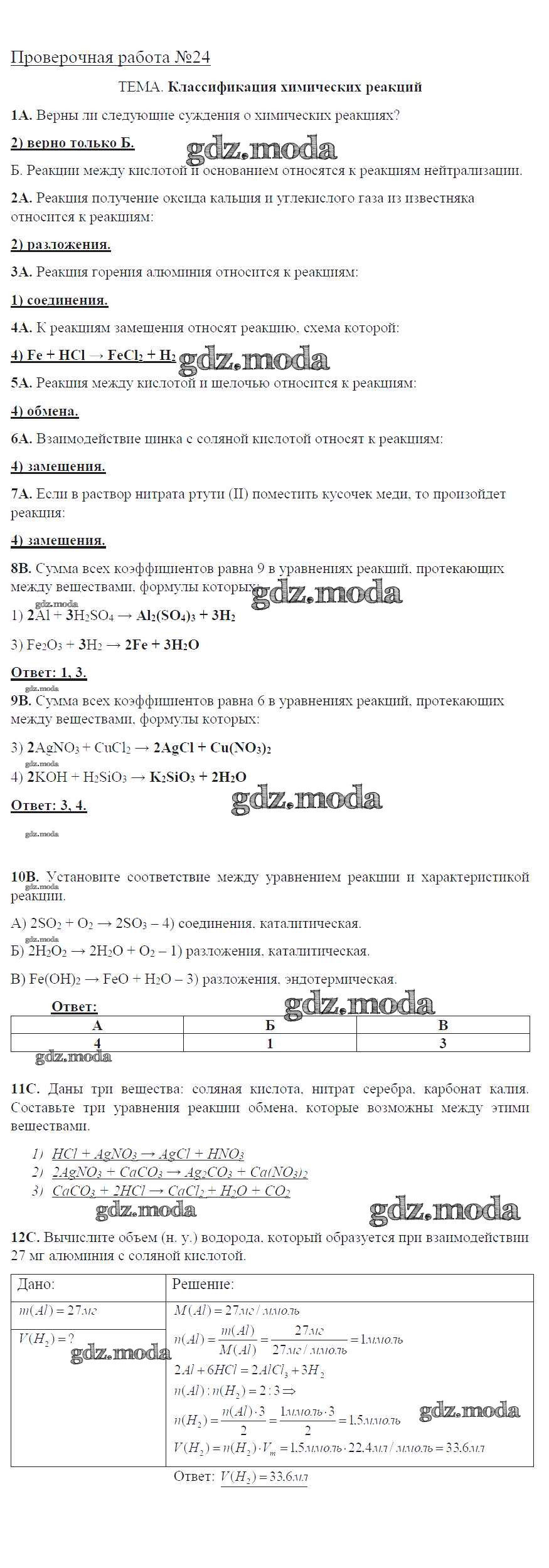 ГДЗ решение к заданию № 24 Химия 8 класс тетрадь для оценки качества знаний Габриелян О.С. Дрофа 2013 ФГОС бесплатно на гдз.мода!