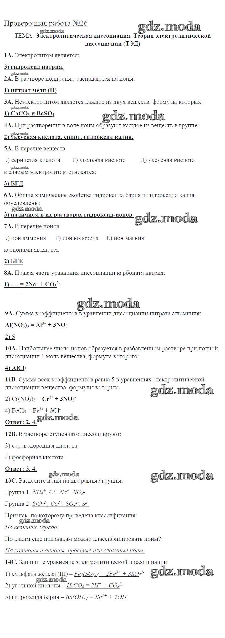 ГДЗ решение к заданию № 26 Химия 8 класс тетрадь для оценки качества знаний Габриелян О.С. Дрофа 2013 ФГОС бесплатно на гдз.мода!