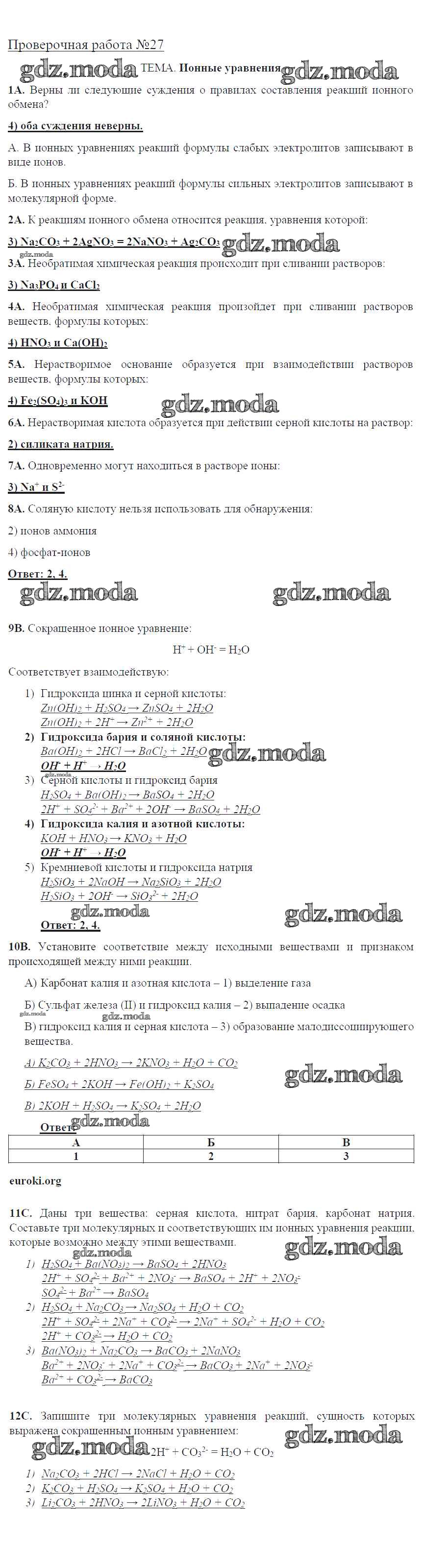 ГДЗ решение к заданию № 27 Химия 8 класс тетрадь для оценки качества знаний Габриелян О.С. Дрофа 2013 ФГОС бесплатно на гдз.мода!