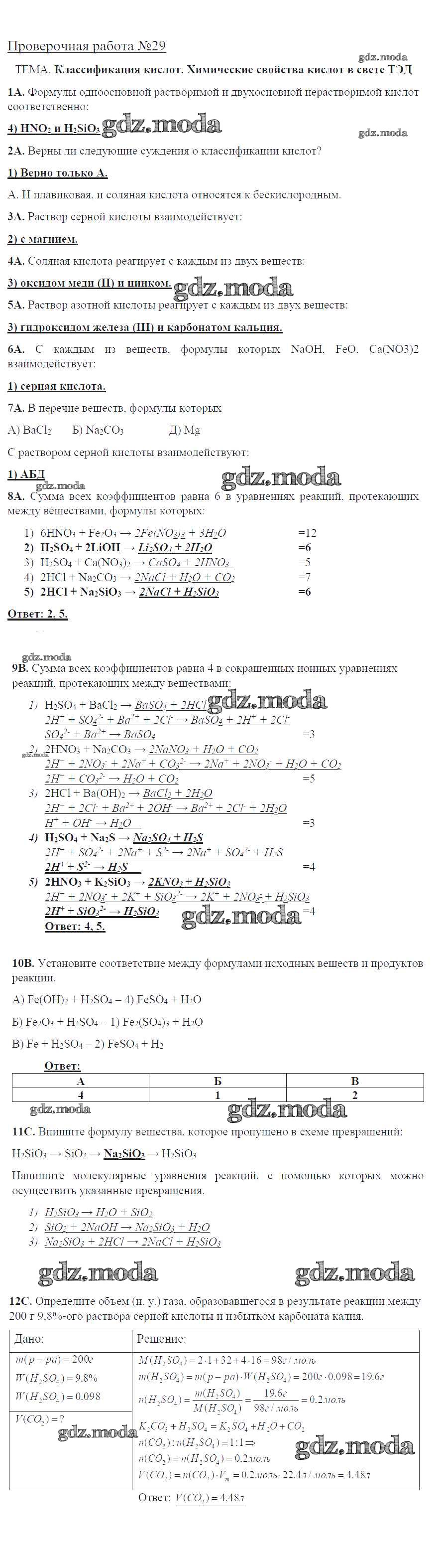 ГДЗ решение к заданию № 29 Химия 8 класс тетрадь для оценки качества знаний Габриелян О.С. Дрофа 2013 ФГОС бесплатно на гдз.мода!