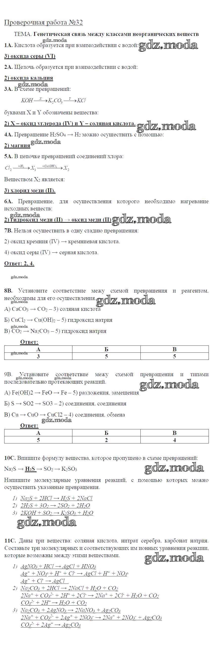 ГДЗ решение к заданию № 32 Химия 8 класс тетрадь для оценки качества знаний Габриелян О.С. Дрофа 2013 ФГОС бесплатно на гдз.мода!