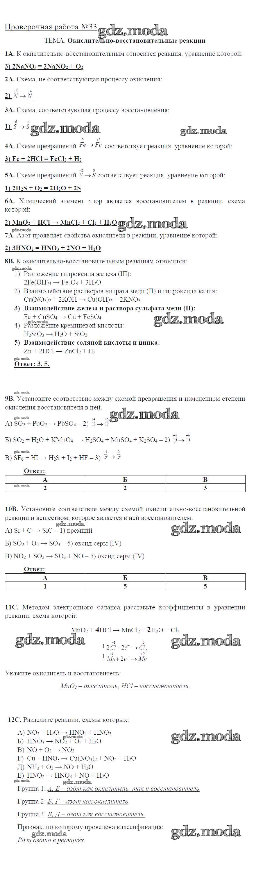 ГДЗ решение к заданию № 33 Химия 8 класс тетрадь для оценки качества знаний Габриелян О.С. Дрофа 2013 ФГОС бесплатно на гдз.мода!