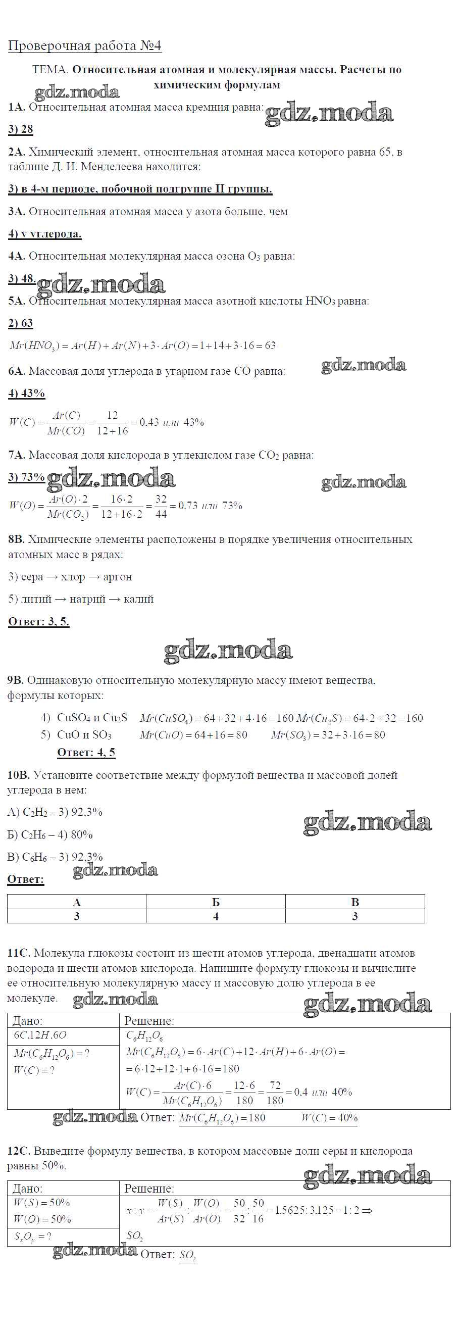 ГДЗ решение к заданию № 4 Химия 8 класс тетрадь для оценки качества знаний Габриелян О.С. Дрофа 2013 ФГОС бесплатно на гдз.мода!