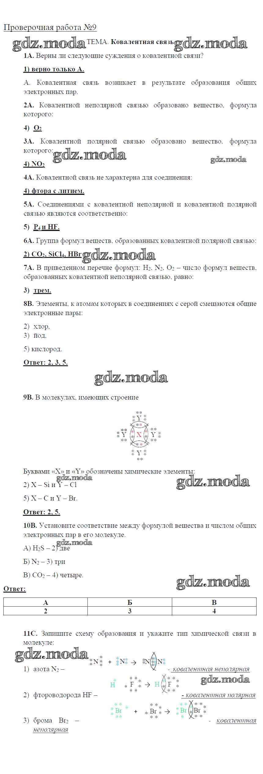 ГДЗ решение к заданию № 9 Химия 8 класс тетрадь для оценки качества знаний Габриелян О.С. Дрофа 2013 ФГОС бесплатно на гдз.мода!
