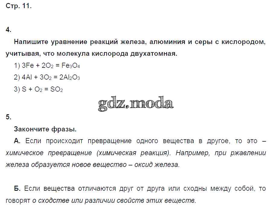 ГДЗ решение к заданию № 11 Химия 8 класс тетрадь-экзаменатор Бобылёва О.Л. Просвещение 2016 ФГОС бесплатно на гдз.мода!
