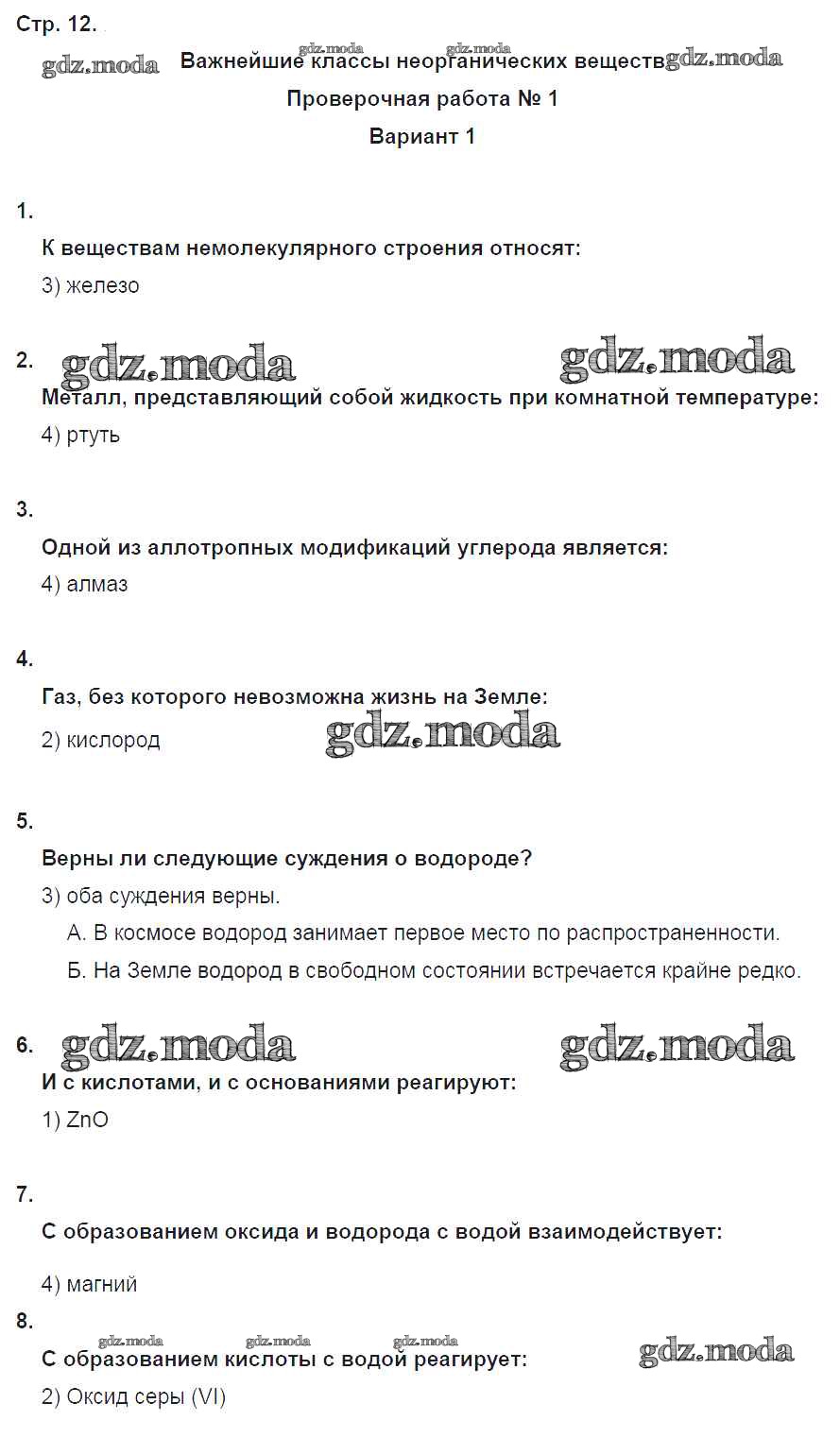 ГДЗ решение к заданию № 12 Химия 8 класс тетрадь-экзаменатор Бобылёва О.Л. Просвещение 2016 ФГОС бесплатно на гдз.мода!