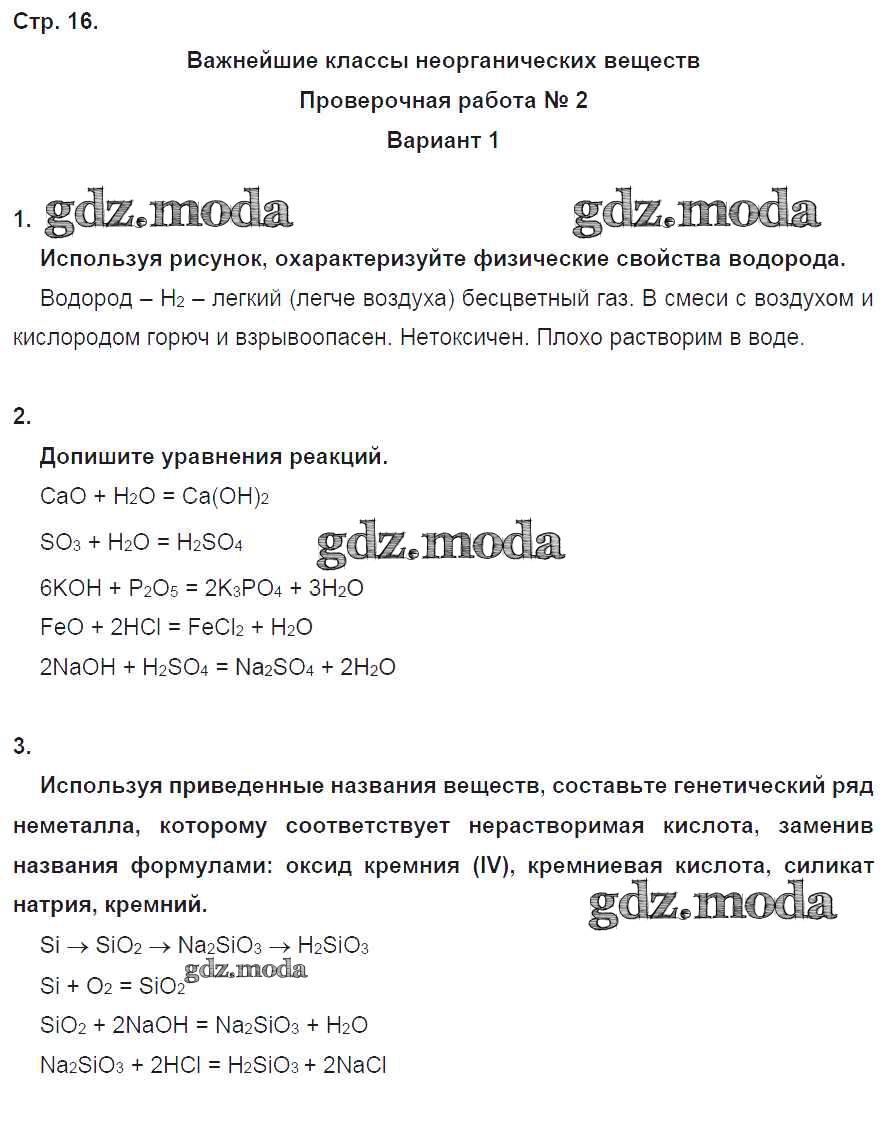 ГДЗ решение к заданию № 16 Химия 8 класс тетрадь-экзаменатор Бобылёва О.Л. Просвещение 2016 ФГОС бесплатно на гдз.мода!