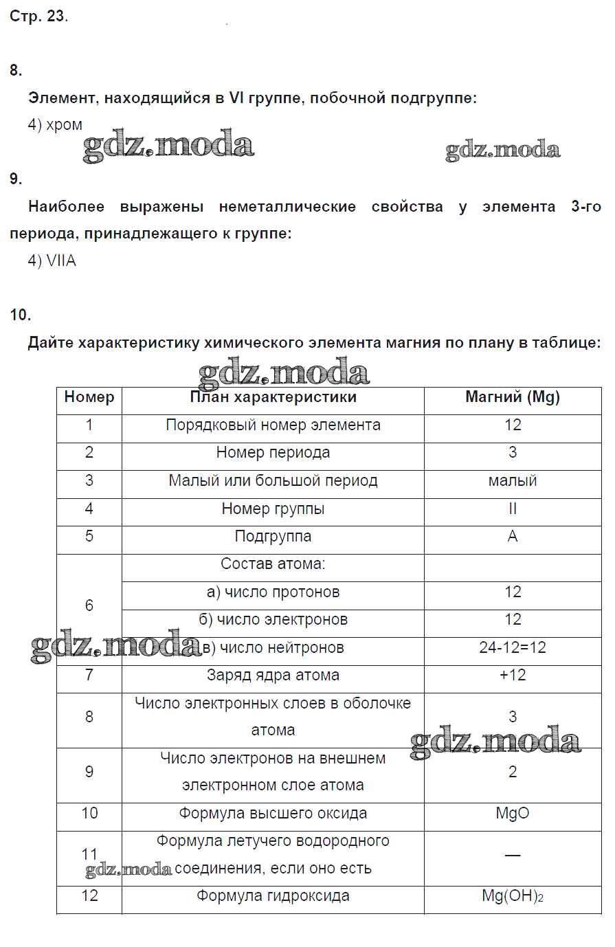 ГДЗ решение к заданию № 23 Химия 8 класс тетрадь-экзаменатор Бобылёва О.Л. Просвещение 2016 ФГОС бесплатно на гдз.мода!