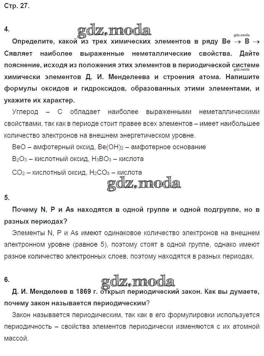 ГДЗ решение к заданию № 27 Химия 8 класс тетрадь-экзаменатор Бобылёва О.Л. Просвещение 2016 ФГОС бесплатно на гдз.мода!