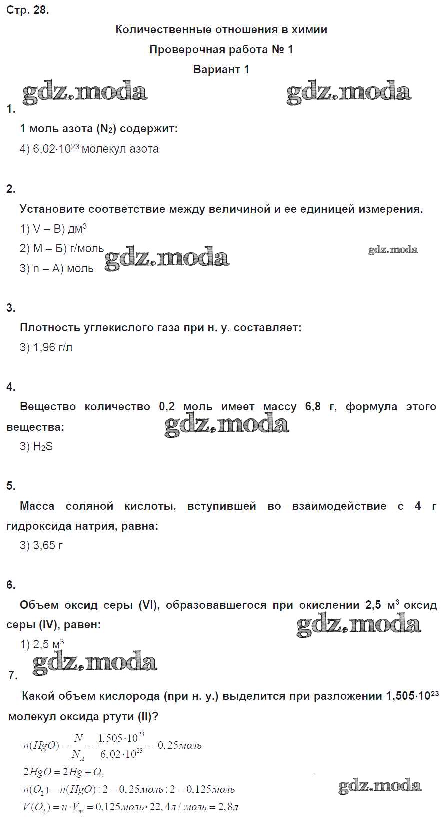 ГДЗ решение к заданию № 28 Химия 8 класс тетрадь-экзаменатор Бобылёва О.Л. Просвещение 2016 ФГОС бесплатно на гдз.мода!