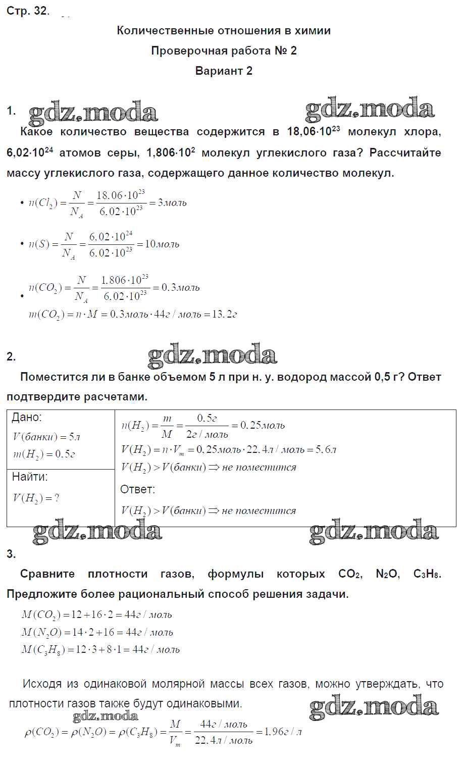 ГДЗ решение к заданию № 32 Химия 8 класс тетрадь-экзаменатор Бобылёва О.Л. Просвещение 2016 ФГОС бесплатно на гдз.мода!