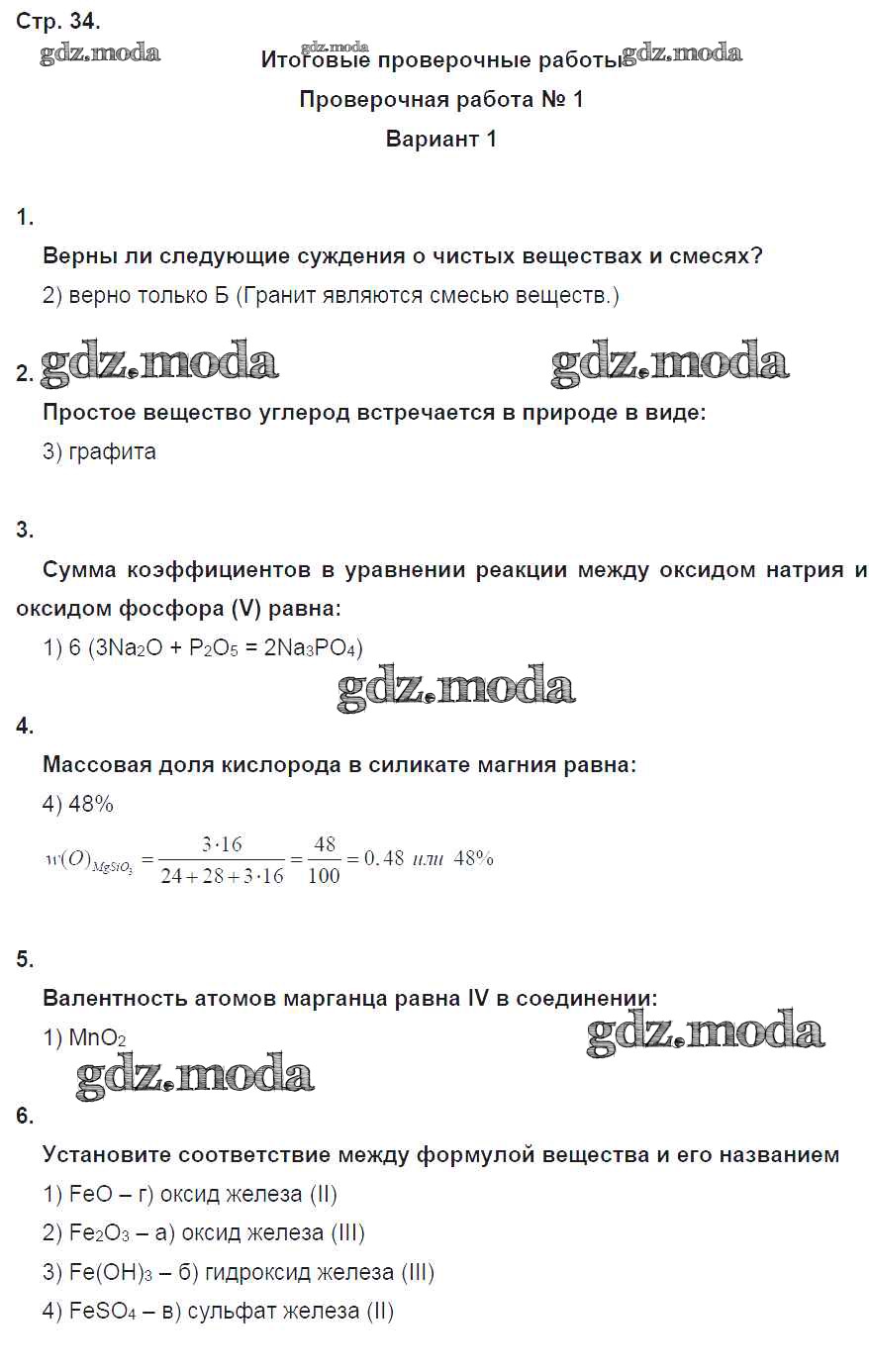 ГДЗ решение к заданию № 34 Химия 8 класс тетрадь-экзаменатор Бобылёва О.Л. Просвещение 2016 ФГОС бесплатно на гдз.мода!