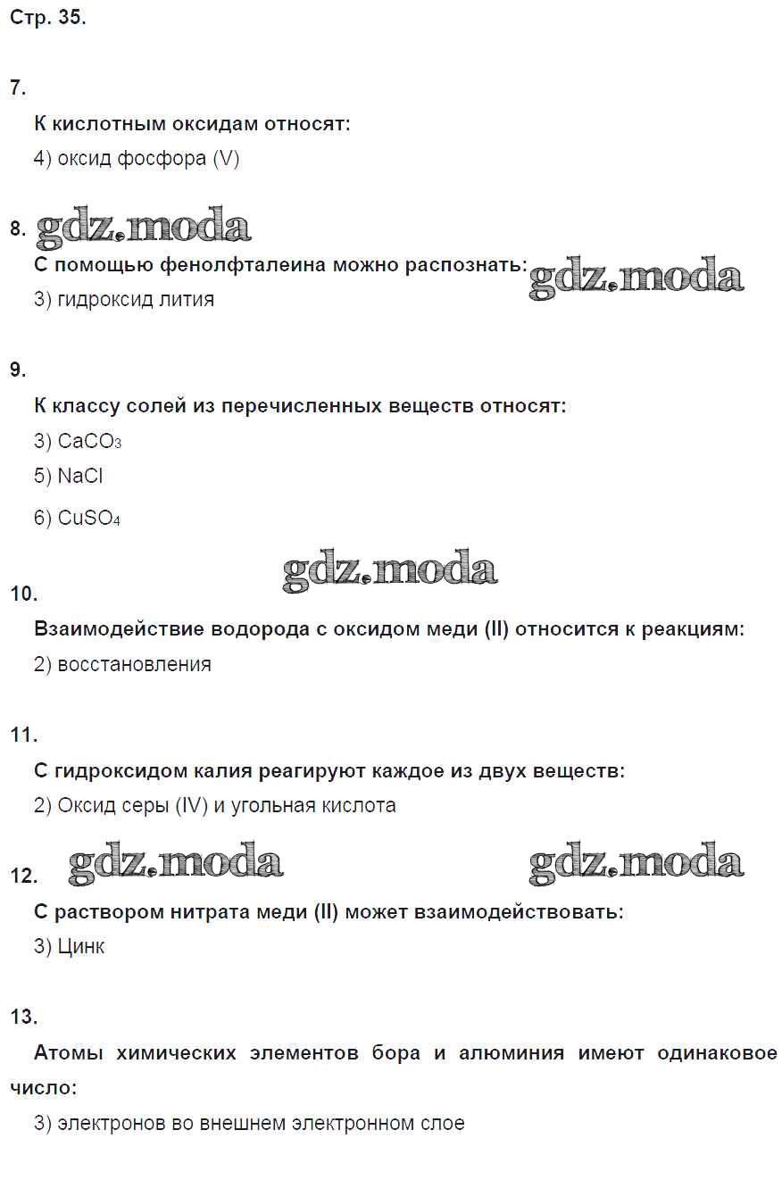 ГДЗ решение к заданию № 35 Химия 8 класс тетрадь-экзаменатор Бобылёва О.Л. Просвещение 2016 ФГОС бесплатно на гдз.мода!
