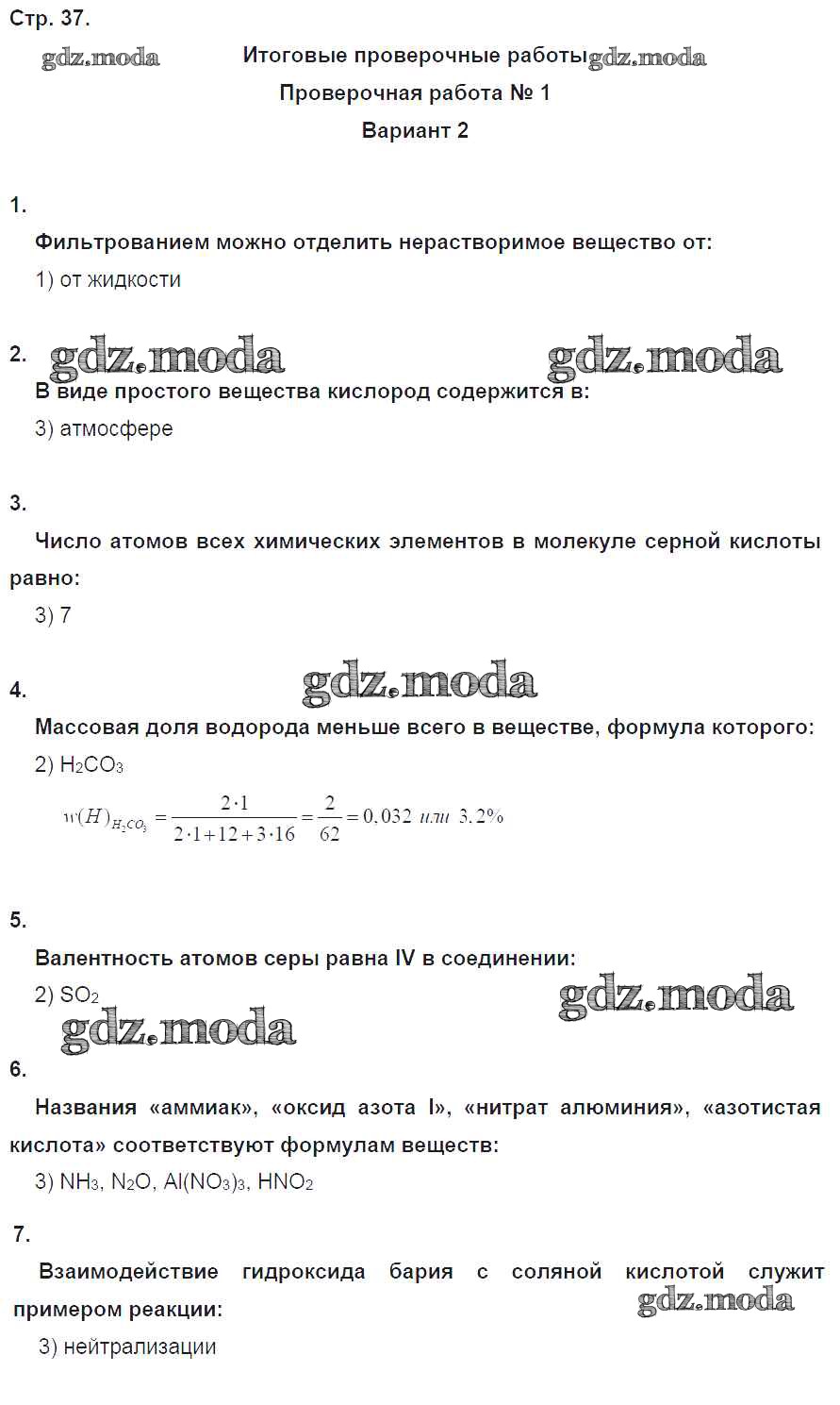 ГДЗ решение к заданию № 37 Химия 8 класс тетрадь-экзаменатор Бобылёва О.Л. Просвещение 2016 ФГОС бесплатно на гдз.мода!