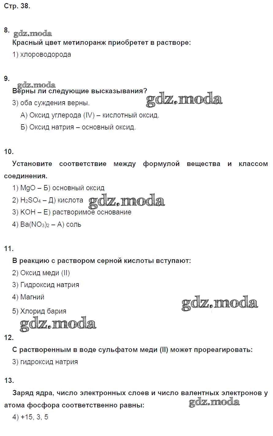 ГДЗ решение к заданию № 38 Химия 8 класс тетрадь-экзаменатор Бобылёва О.Л. Просвещение 2016 ФГОС бесплатно на гдз.мода!