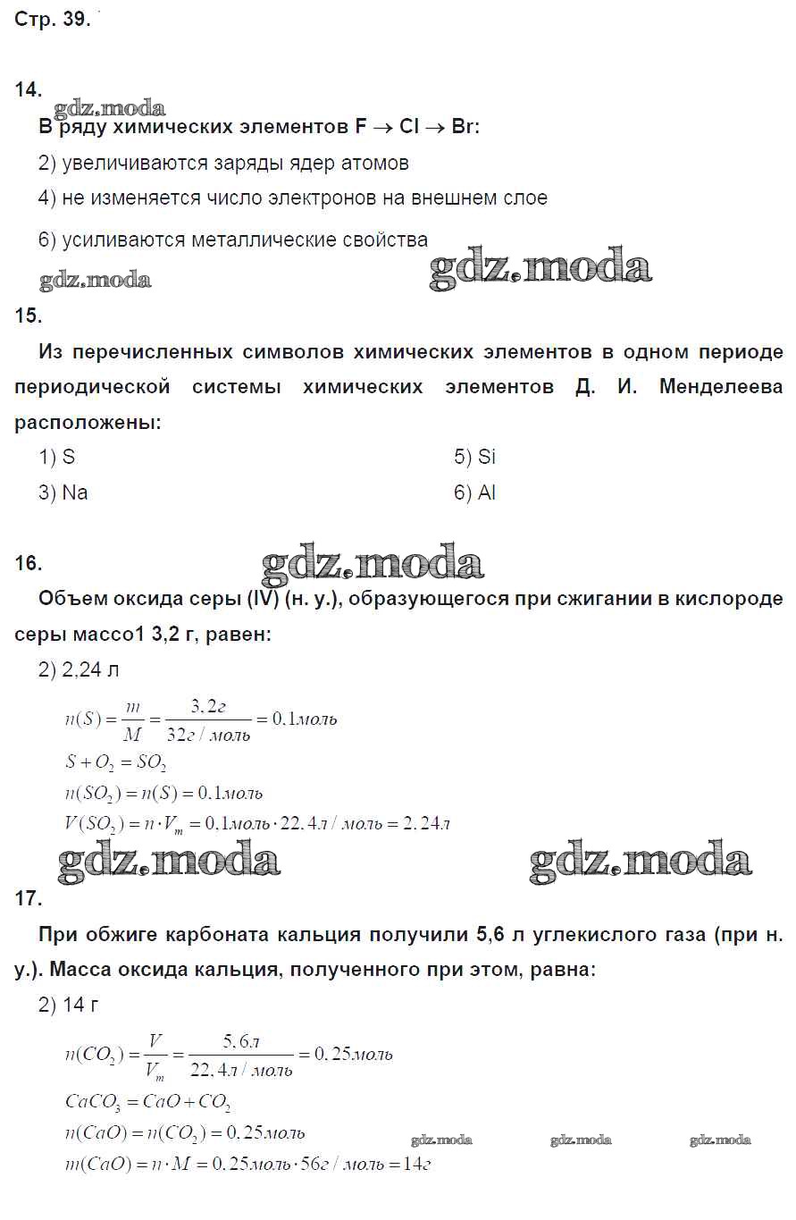 ГДЗ решение к заданию № 39 Химия 8 класс тетрадь-экзаменатор Бобылёва О.Л. Просвещение 2016 ФГОС бесплатно на гдз.мода!
