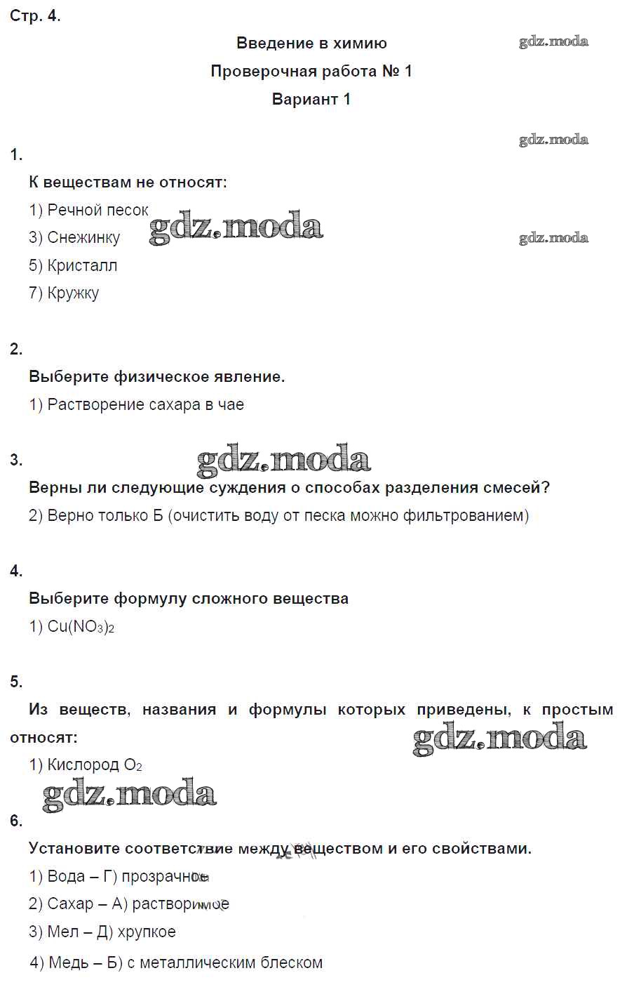 ГДЗ решение к заданию № 4 Химия 8 класс тетрадь-экзаменатор Бобылёва О.Л. Просвещение 2016 ФГОС бесплатно на гдз.мода!
