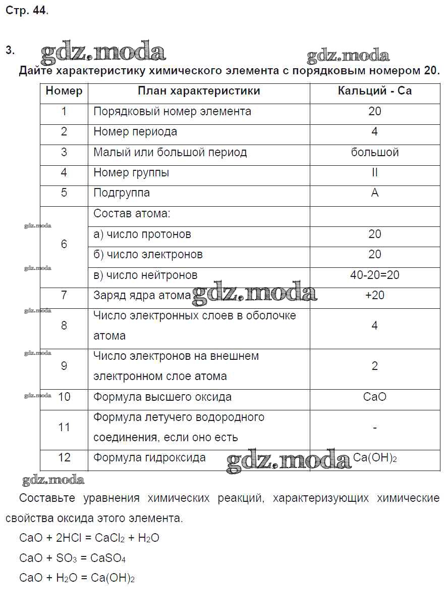 ГДЗ решение к заданию № 44 Химия 8 класс тетрадь-экзаменатор Бобылёва О.Л. Просвещение 2016 ФГОС бесплатно на гдз.мода!
