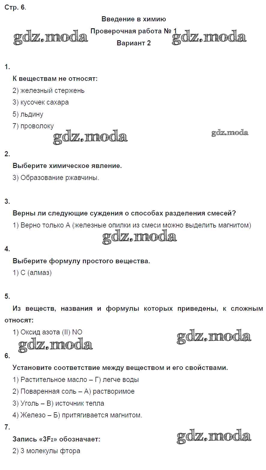 ГДЗ решение к заданию № 6 Химия 8 класс тетрадь-экзаменатор Бобылёва О.Л. Просвещение 2016 ФГОС бесплатно на гдз.мода!