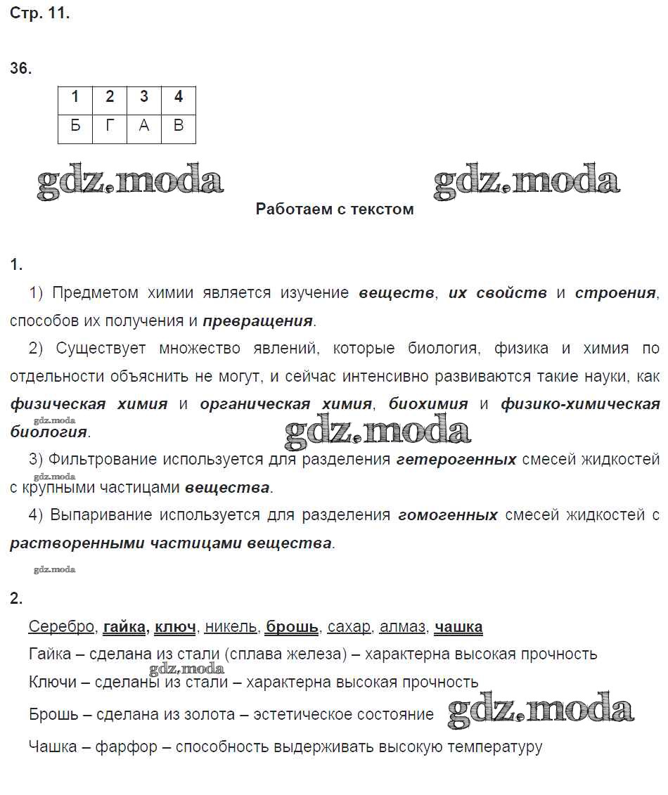 ГДЗ решение к заданию № 11 Химия 8 класс тетрадь-тренажёр Гара Н.Н. Просвещение 2017 ФГОС бесплатно на гдз.мода!