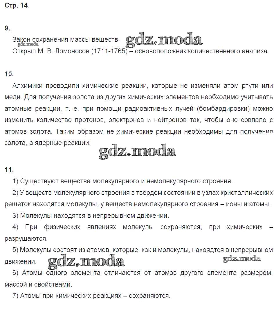 ГДЗ решение к заданию № 14 Химия 8 класс тетрадь-тренажёр Гара Н.Н. Просвещение 2017 ФГОС бесплатно на гдз.мода!