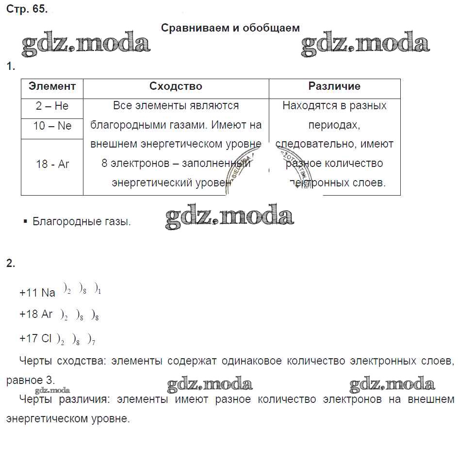 ГДЗ решение к заданию № 65 Химия 8 класс тетрадь-тренажёр Гара Н.Н. Просвещение 2017 ФГОС бесплатно на гдз.мода!