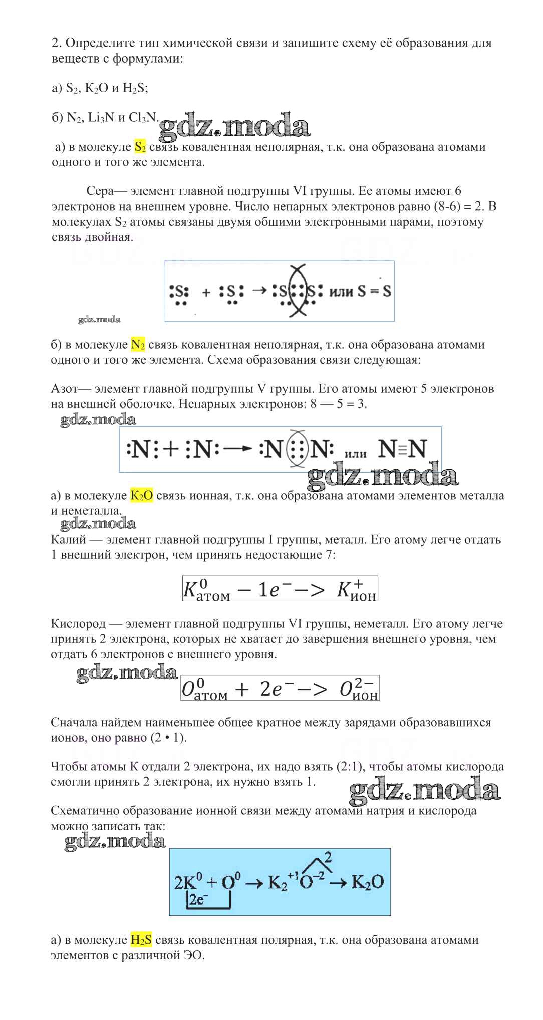 ГДЗ решение к заданию № 2 Химия 8 класс Габриелян О.С. Дрофа 2019 ФГОС бесплатно на гдз.мода!