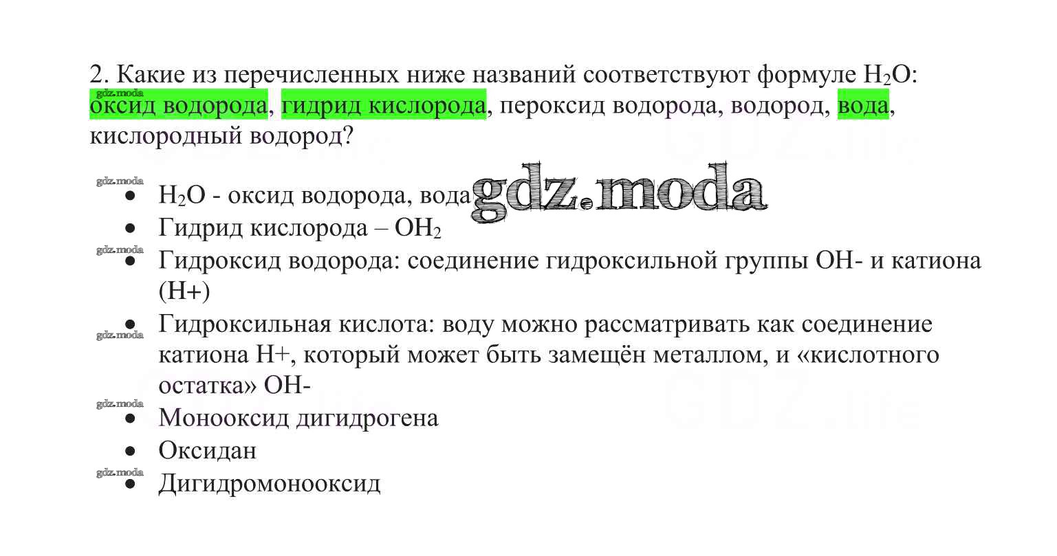 ГДЗ решение к заданию № 2 Химия 8 класс Габриелян О.С. Дрофа 2019 ФГОС бесплатно на гдз.мода!