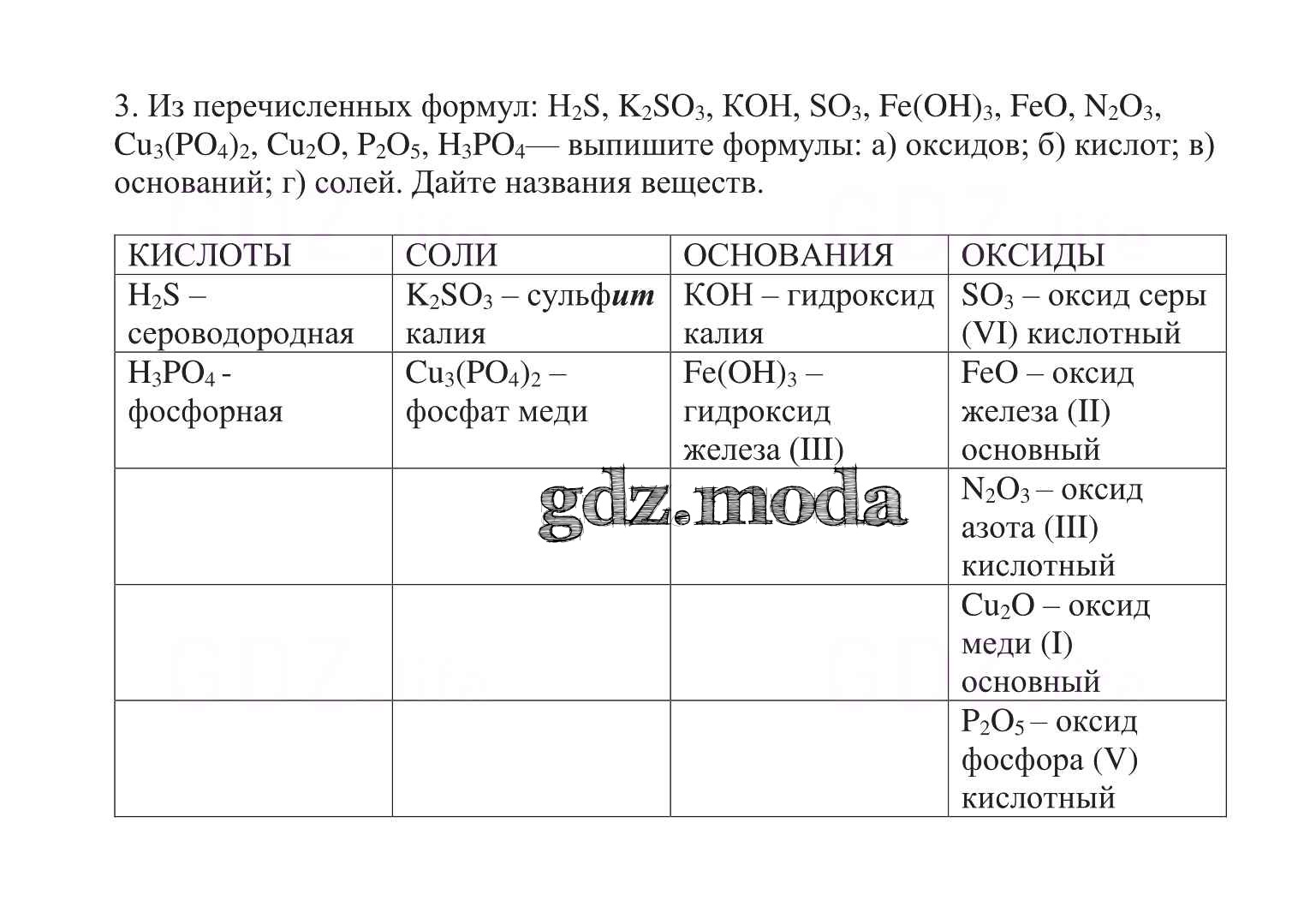ГДЗ решение к заданию № 3 Химия 8 класс Габриелян О.С. Дрофа 2019 ФГОС бесплатно на гдз.мода!