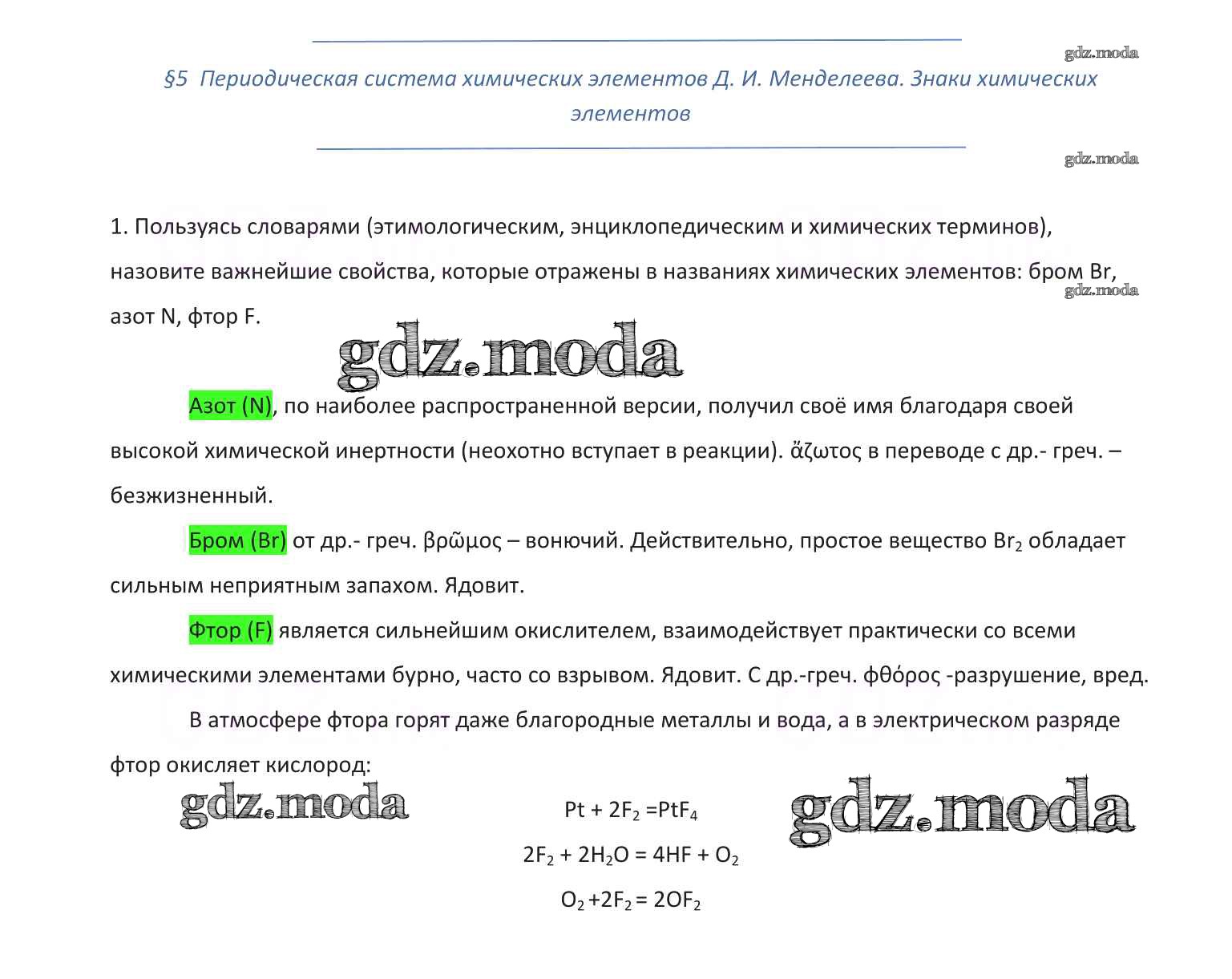 ГДЗ решение к заданию № 1 Химия 8 класс Габриелян О.С. Дрофа 2019 ФГОС бесплатно на гдз.мода!