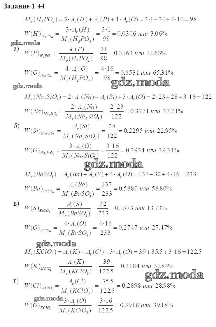 ГДЗ решение к заданию № 44 Химия 8 класс задачник Кузнецова Н.Е. Вентана-граф 2015 ФГОС бесплатно на гдз.мода!