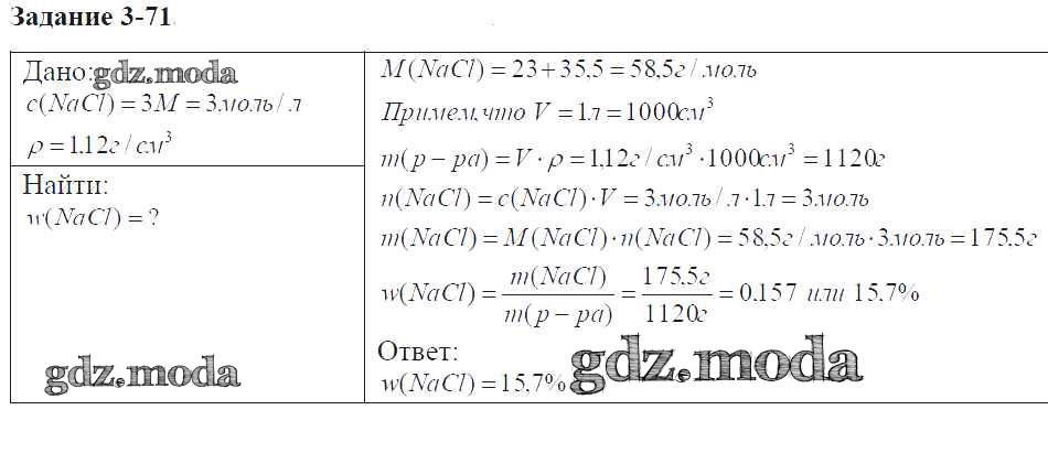 ГДЗ решение к заданию № 71 Химия 8 класс задачник Кузнецова Н.Е. Вентана-граф 2015 ФГОС бесплатно на гдз.мода!