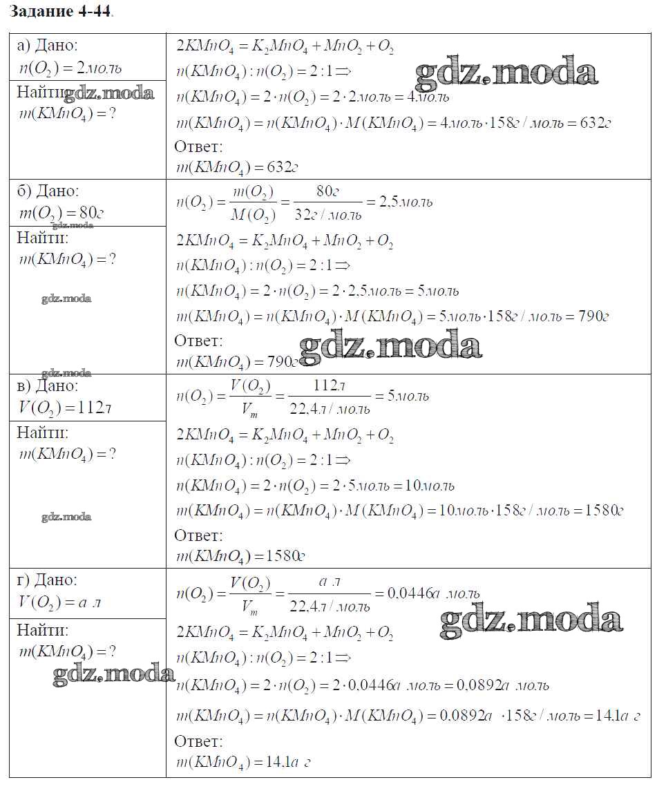 ГДЗ решение к заданию № 44 Химия 8 класс задачник Кузнецова Н.Е. Вентана-граф 2015 ФГОС бесплатно на гдз.мода!